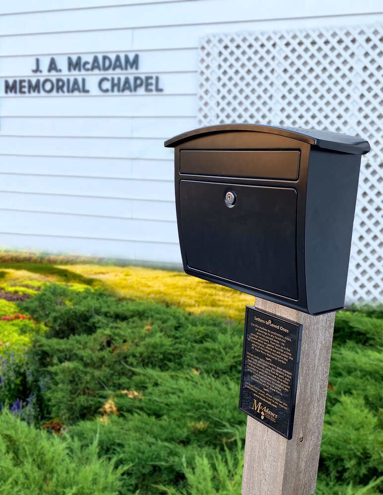 McAdam’s Funeral Home is pleased to introduce our Letters To Loved Ones program and invites you to write a letter or card and drop it into our special secure letter box in the M. Joyce Perry Memorial Garden found on the Brunswick Street side of our building.